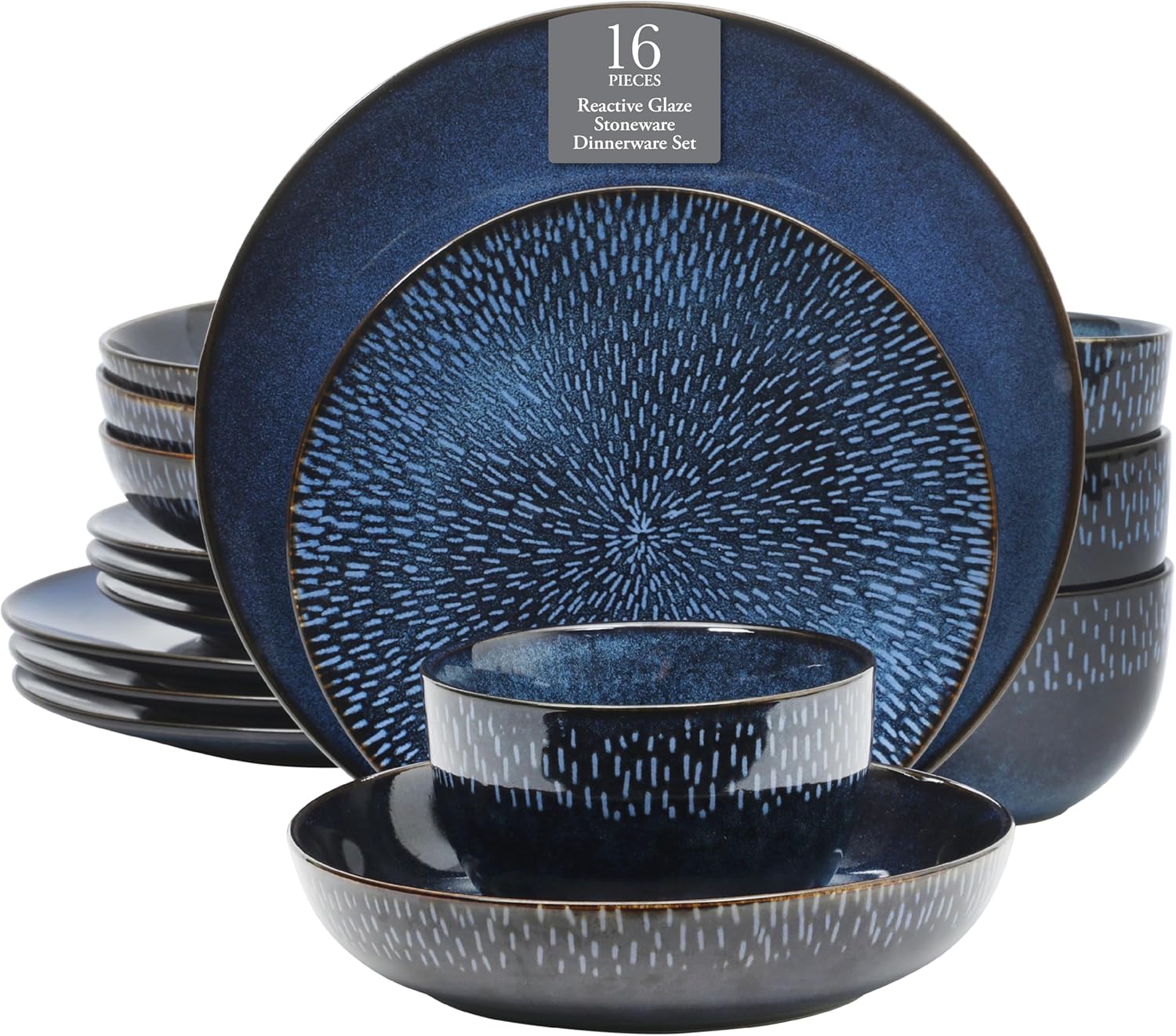 16 Piece Double Bowl Dinnerware Set, Cobalt Blue